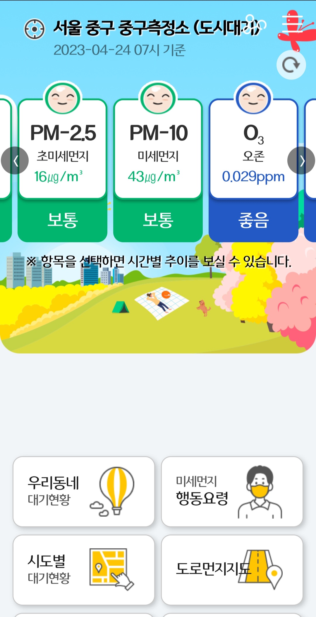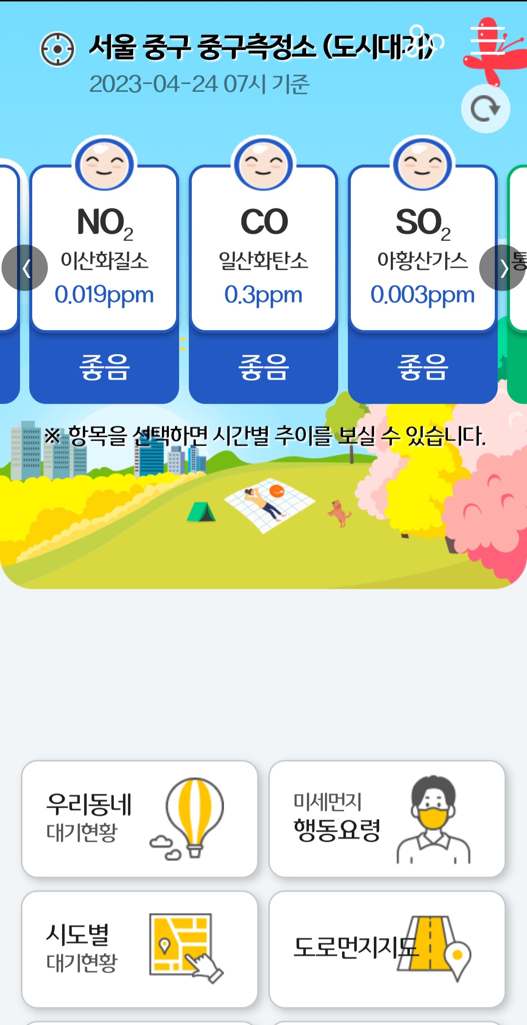 - 오존, 이산화질소, 황사, 일산화탄소 실시간 확인