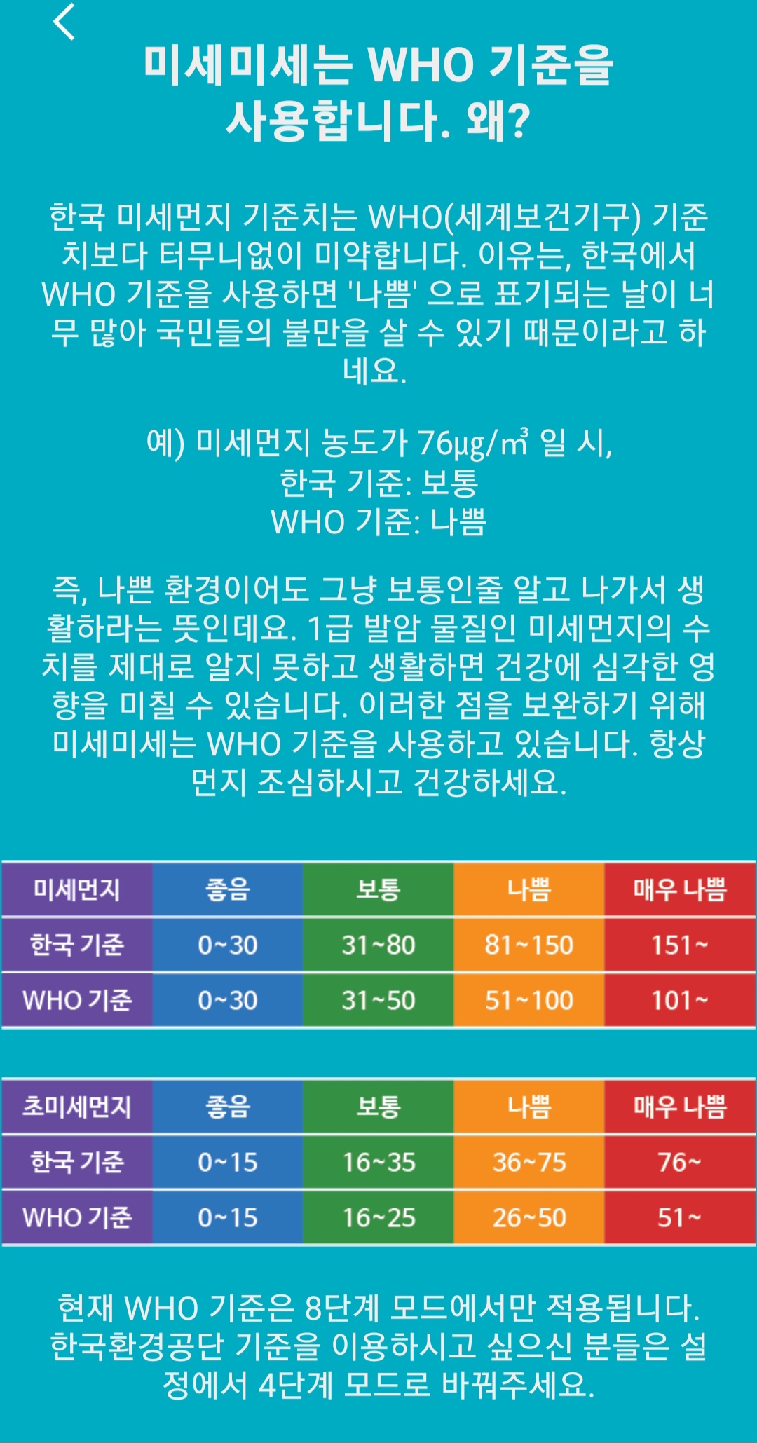 아마 많은 분들이 미세먼지 농도확인을 위해 <미세미세>를 가장 많이 사용하는 듯싶습니다. 이 어플의 특징을 앱 정보에 적혀있는 설명을 참고하여 알아본 다음, 실제 제가 사용해 본 후기에 대해 말씀드리겠습니다.