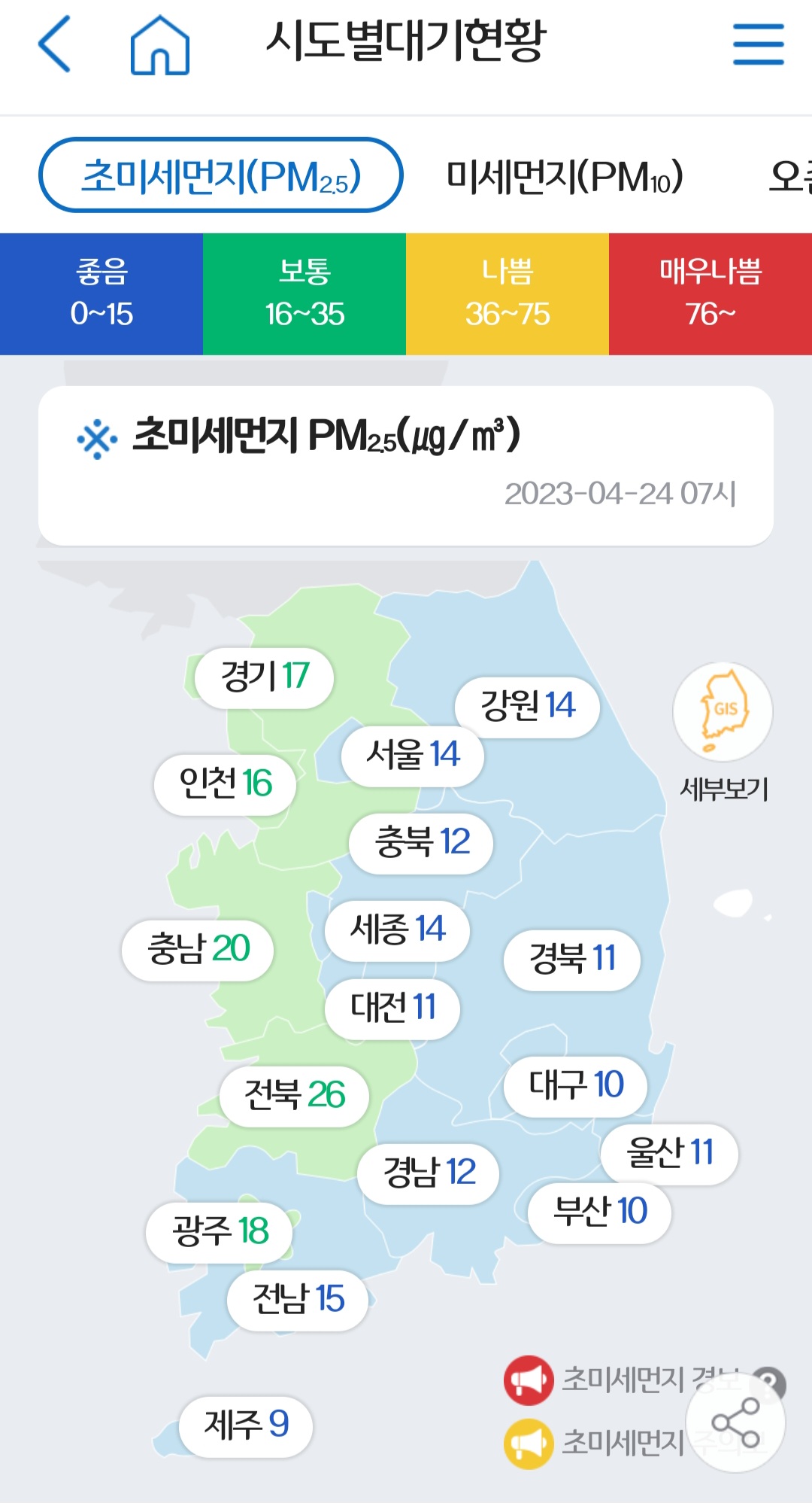 - 실시간 초미세먼지 농도 확인
