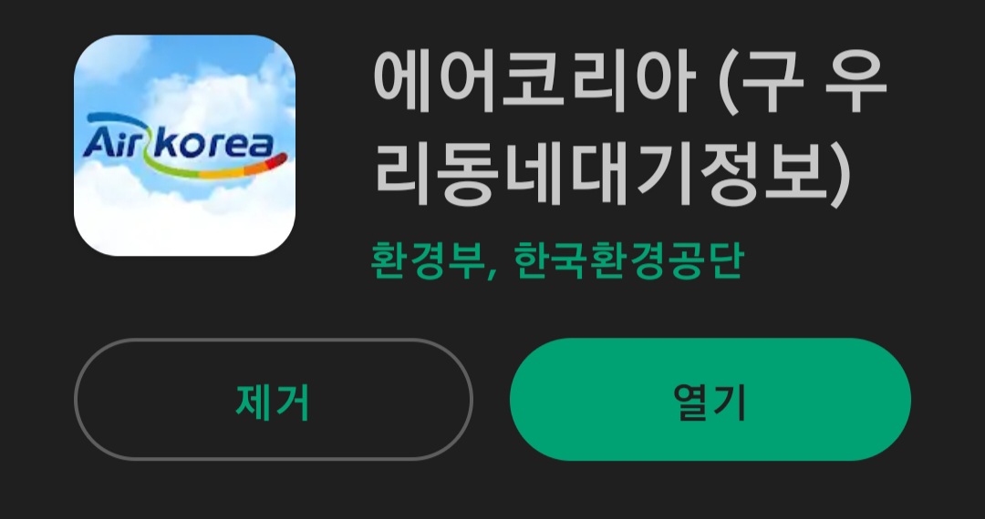 제가 생각하는 가장 정확한 어플은 "에어코리아"라고 생각합니다. 실제로 미세미세도 에어코리아에서 정보를 얻을 만큼 믿을만한 정보인 셈입니다. 다만 아쉬운 점이 있다면 위젯 기능을 제공하지 않는다는 점입니다. 매번 어플을 들어가서 미세먼지 농도를 확인해야 하는 단점이 있지만 정확한 수치를 확인하고 싶다면 추천드리는 어플입니다.