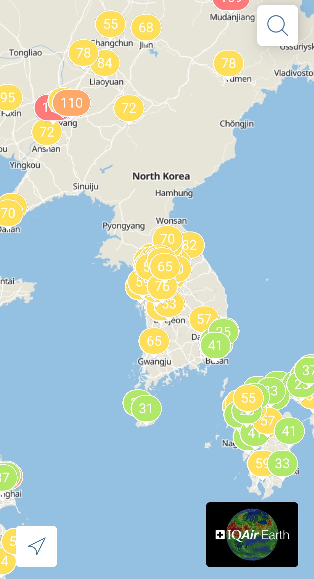 - 80여 개국 나라 대기정보 제공