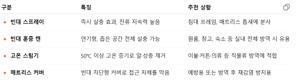 - 반복되면 살충제 사용 또는 전문 방역 업체 의뢰 권장